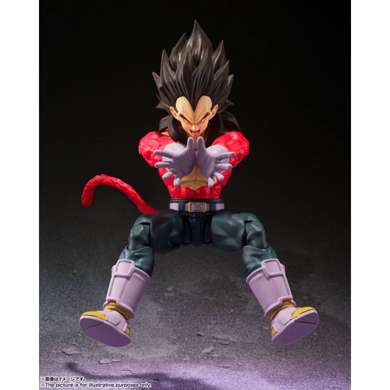 Tamashii Nations presenta dentro de la serie SH Figuarts la figura de Vegeta Super Saiyan. Esta figura articulada de PVC mide unos 13 cm y reproduce poses clave de la serie. Incluye tres partes de expresión opcionales, cinco pares de manos opcionales, partes de efecto Final Shine Attack, una cola y una base para su exposición.