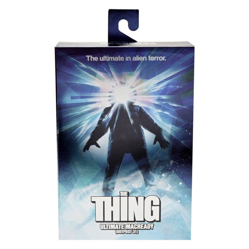 Neca presenta esta figura articulada de Macready, inspirada en la película de John Carpenter "The Thing", con la imagen oficial con licencia de Kurt Russell y con el aspecto que presentaba el personaje en el Outpost 31. Se trata de una figura hecha en PVC, con un tamaño de unos 18 cm de alto e incluye 3 cabezas intercambiables, bolsa, 2x pares de manos alternativas, gafas de sol, gafas de nieve, lámpara, escopeta recortada, botella de whisky y vaso.