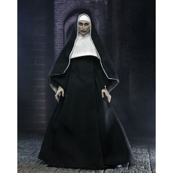 Neca presenta dentro de la colección Scale Action Figure, la figura de la Monja. Mide 17 cm y está diseñada para parecerse al personaje de la película "La monja". La Monja es totalmente articulada e incluye 1x cabeza intercambiable, 1x par de manos extras, 1x orbe, 1x cuadro y 1x soporte. Viene en una caja con ventana y solapa frontal.