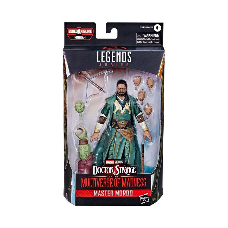 Figura de Master Mordo de la línea Marvel Legends Series, con múltiples puntos de articulación y accesorios inspirados en las película, incluyendo manos alternativas y bastón. Tamaño aproximado 15 cm.