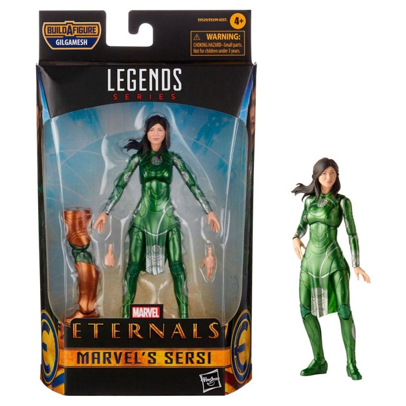 Hasbro presenta dentro de la colección Marvel Legends la figura de Sersi basada en la pelicula Eternals. Se trata de una figura de 15 cm hecha en PVC con múltiples puntos de articulación. Incluye 2x manos opcionales y una parte de la figura de Gilgamesh (una pierna)
