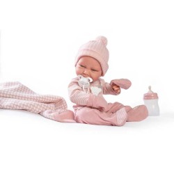 Muñeca Antonio Juan Recién Nacida Carla con Manoplas y Biberón mide 42 centímetros y ama que la abraces para dormir. ¿Hay algo más adorable que un bebé recién nacido?. Antonio Juan Ref: 50290. Edad recomendada: +3 años.