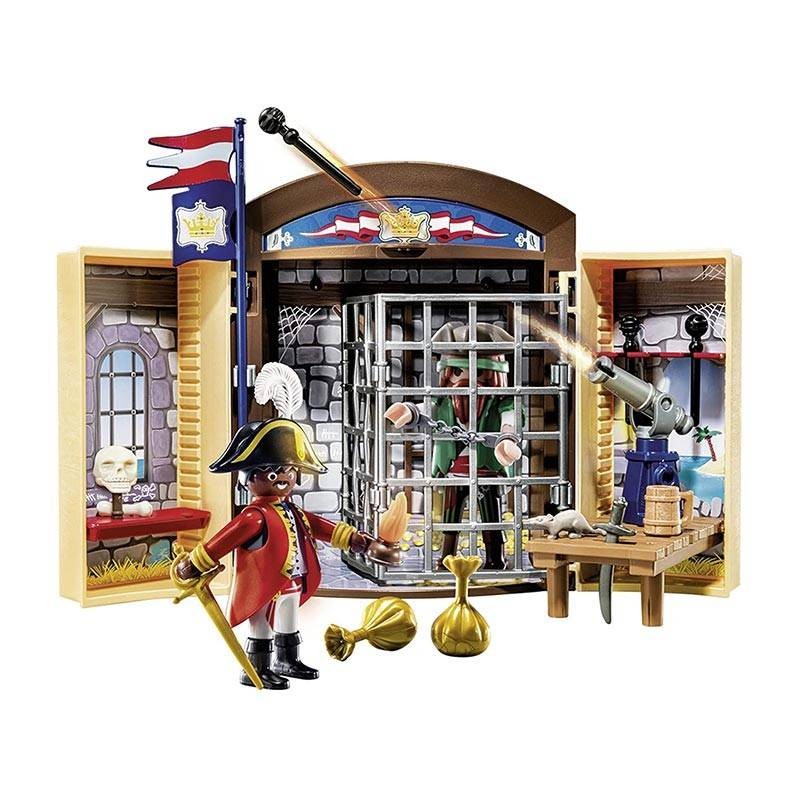 El cofre Aventura Pirata de Playmobil es una prisión con cañon para proteger el muelle y con escondite para el tesoro. Este set incluye 2 figuras, cofre/escenario y varios accesorios más. Playmobil. Ref.: 70506. Edad recomendada +4 años.