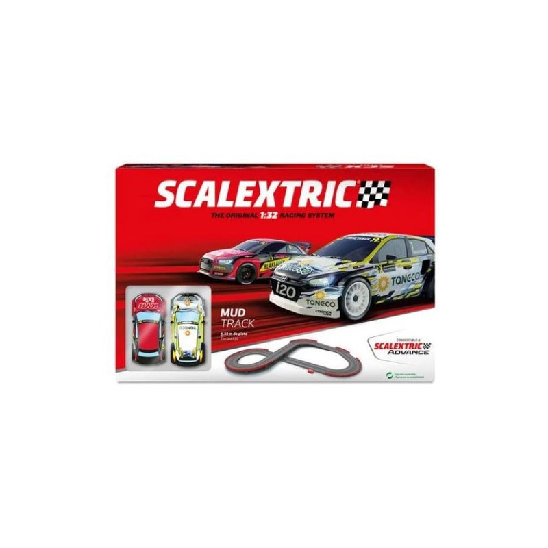 Circuito escala 1:32 de 5,22 metros de pista. Dos coches incluidos slot Rally: Audi S1 RX "Blaklader" y Hyundai i-20 RX "Taneco". Incluye puente y vallas guardarrail. Convertible a SCALEXTRIC ADVANCE.