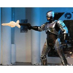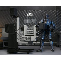 Neca presenta esta figura articulada de Robocop, acompañado de la silla de reparación y programación. Inspirada en la película "Robocop", Se trata de una figura hecha en PVC, con un tamaño de unos 18 cm de alto, mientras que la silla mide más de 20 cm de alto y 18 de ancho. Tiene un asiento giratorio y monitores giratorios articulados. RoboCop también viene con aún más accesorios: puño de punta de datos intercambiables, pistola Auto-9, efecto de explosión de boca acoplable y una cabeza intercambiable adicional con la imagen de Peter Weller.