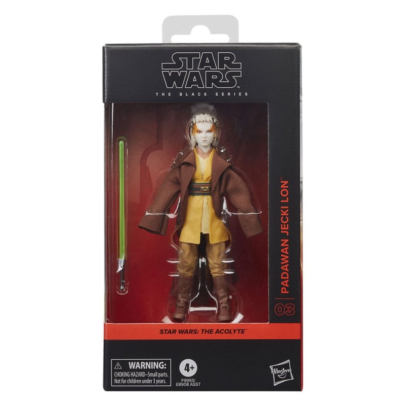 Hasbro presenta, dentro de la colección The Black Series, la figura de Padawan Jecki Lon. Mide 15 cm y está basada en el personaje de la serie "Star Wars: The Acolyte". Cuenta con detalles premium y múltiples puntos de articulación. Incluye 1x sable de luz con hoja extraíble.