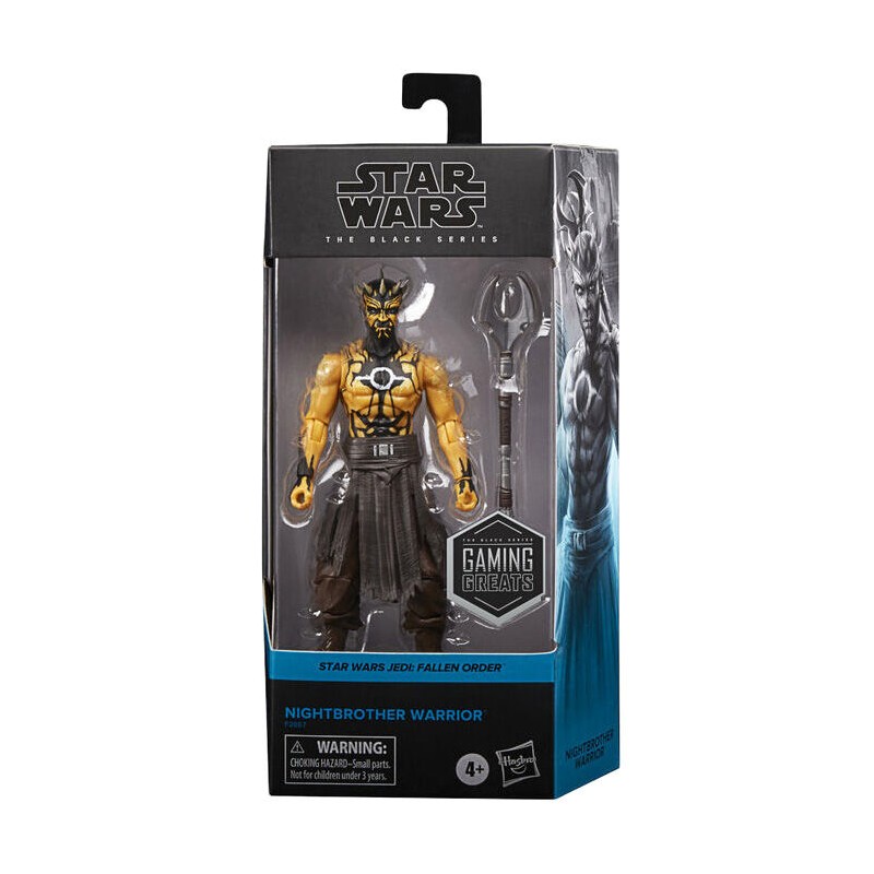Hasbro presenta dentro de su colección Black Series Gaming Greats la figura del Nightbrother Warrior uno de los personajes del videojuego "Jedi Fallen Order" basado en el universo Star Wars. Se trata de una figura articulada de unos 15 cm de alto. Incluye varias armas de complemento.