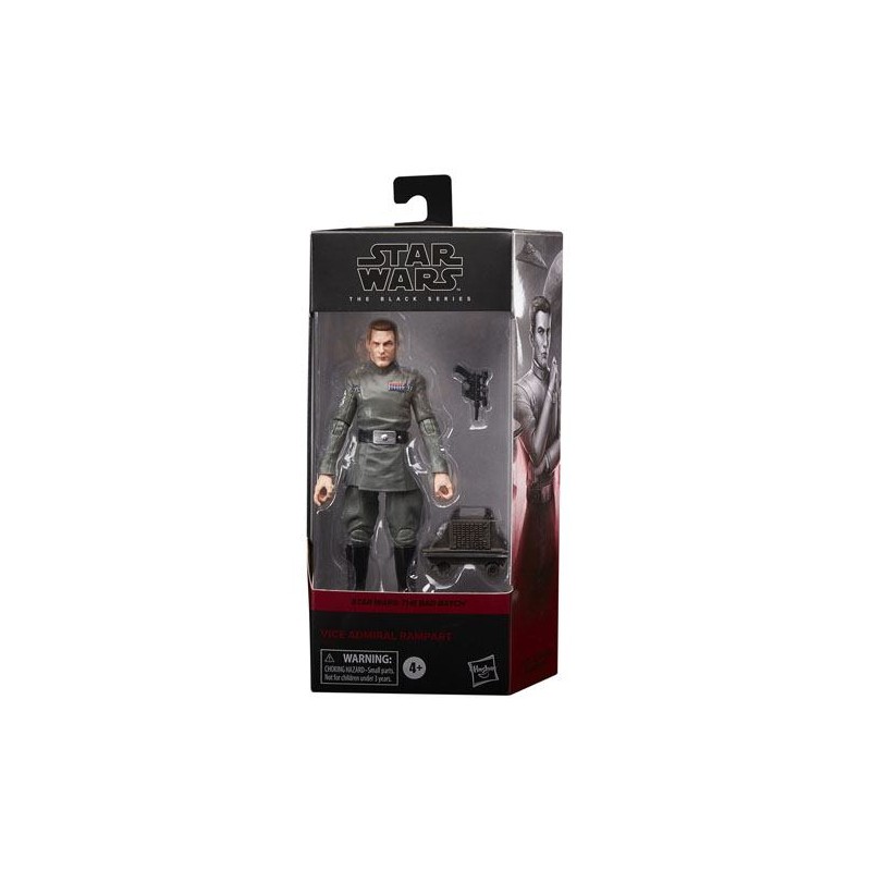 Hasbro presenta dentro de su colección Back Black Series la figura del Vice Almirant Rampart basada en el aspecto de la nueva serie animada de la saga de Strar Wars "The Bad Batch". Se trata de una figura articulada de unos 15 cm de alto con gran calidad y detalle. Incluye pistola blaster como complemento y un droide ratón.
