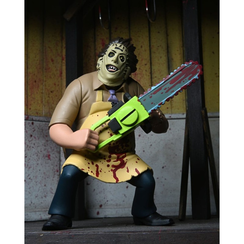 Neca presenta, dentro de la colección Toony Terrors, la figura de Leatherface Bloody Version. Mide 15 cm y está basada en su aparición en la película de 1974 "La matanza de Texas". Se presenta en un blíster conmemorativo del 50 aniversario de su estreno con ilustraciones originales de Geoff Trapp.