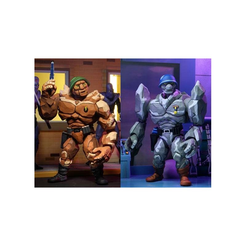 Neca presenta este pack de dos figuras articuladas de Traag y Granitor, líderes de los Soldados de Piedra, inspiradas en la serie de dibujos animados de "Teenage Mutant Ninja Turtles". Hechas en PVC, miden unos 18 cm y vienen cada uno con varios accesorios.